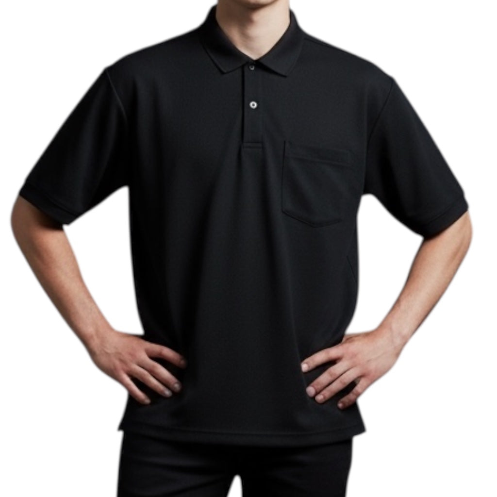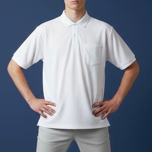 無地ドライボタンダウンポロシャツ吸汗速乾 ポケ有りタイプ